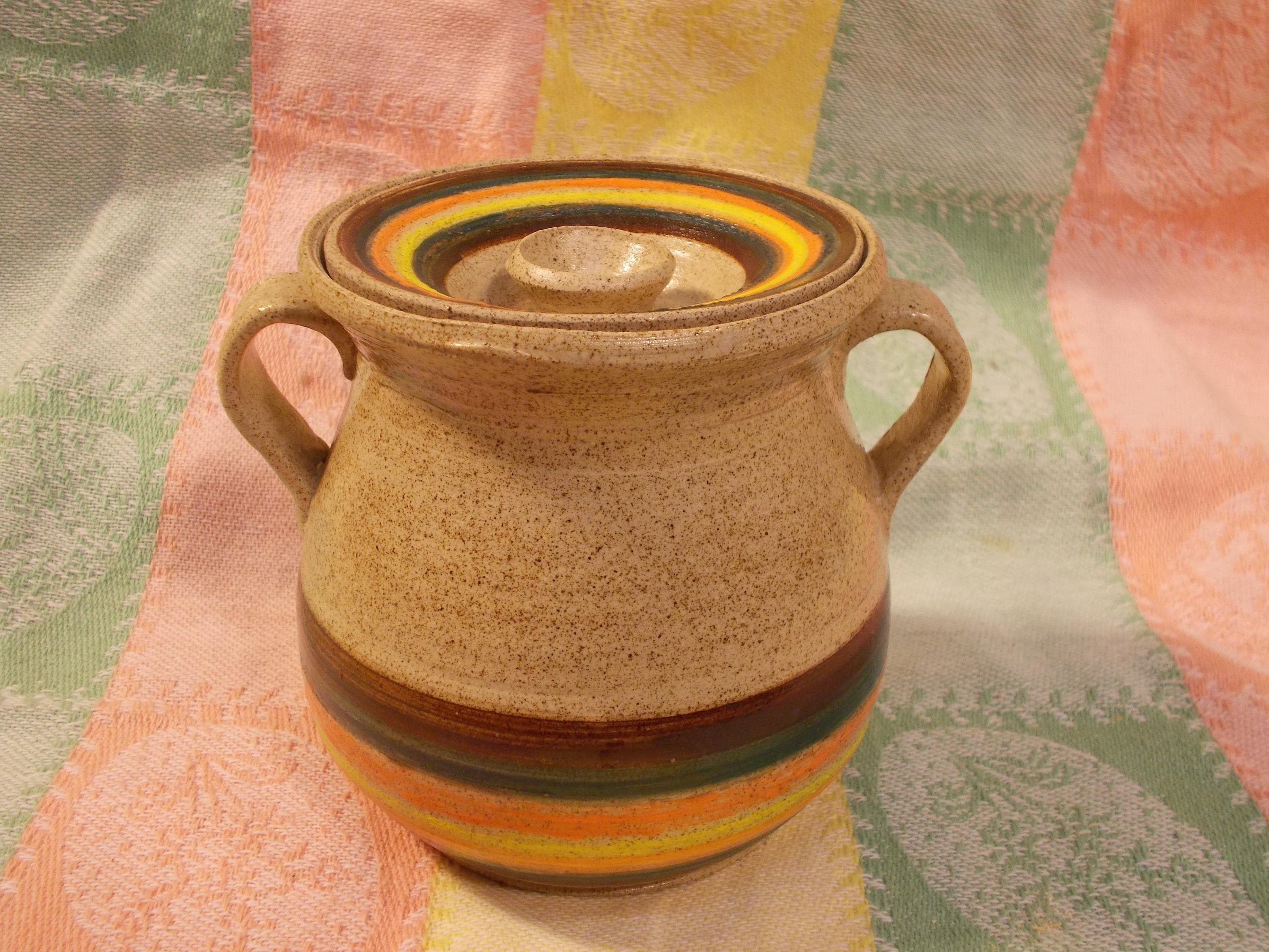 Handmade ceramic stoneware covered Crock cannister or Jar, with lid and handles One Pint